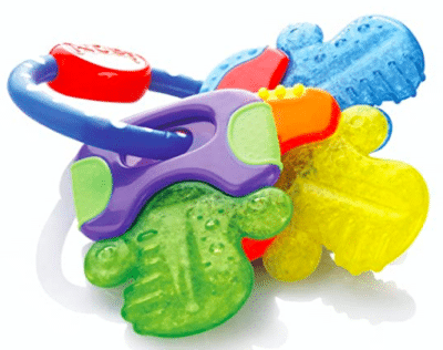 These teether keys are a nice change from the Munch Mitt. You can pop them in the fridge or freezer so they’re nice and cool. They have textures on both sides so the top and bottom gums will get worked at the same time. Of course, they’re free of all the nasty stuff, so rest assured about them going in your child’s mouth.