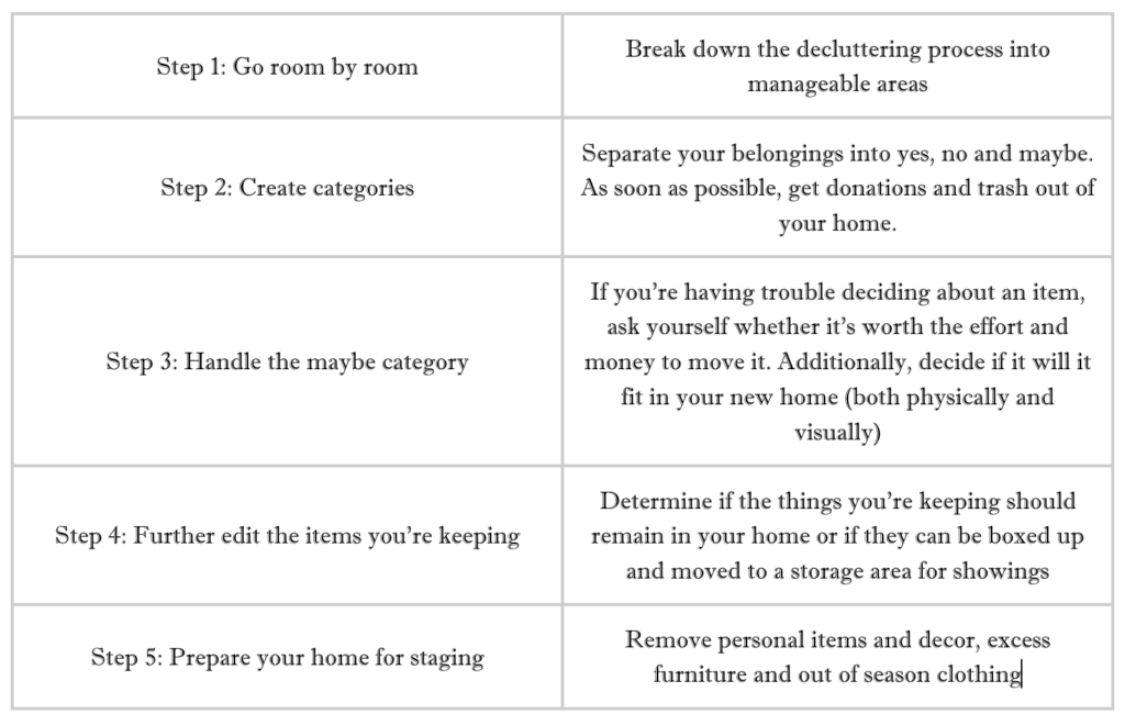 But when you’re decluttering to get ready for a move, the goals are entirely different. You’ll have to make decisions about what items you’ll want/have room for in your new home, you’ll have to decide what you’ll need while your home is on the market vs what things can be temporarily stored and you may have to make much harder decisions about what can stay. Because unfortunately, at the end of the day, keeping too much has the potential to cost you a lot of money.