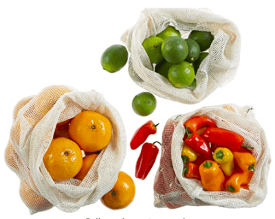 With James’ great love of the ocean, doing our part to keep plastic grocery bags out of the sea was a no-brainer. Not only do we bring our reusable grocery bags with us to do our shopping, we also use these produce bags in the store. They’re breathable and have a drawstring top so you don’t have to worry about runaway fruits and veg!