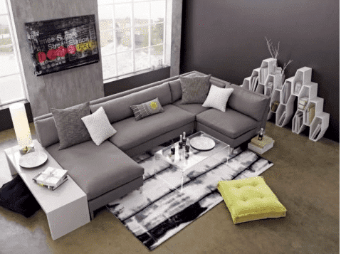 - Art: Bright, Rothko-style pieces. Stay away from figurative art. Large scale, monochromatic prints and photographs with high color saturation can complement a beautiful throw blanket laid over the couch.