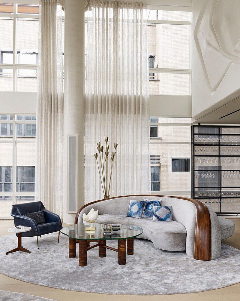- Seating: Think clean looking, not necessarily comfortable. For example, a big gushy couch is nice to sit on but it might not produce the right effect for viewing. The CB2 couches pictured in the gallery have clean lines without the harsh, angular look.