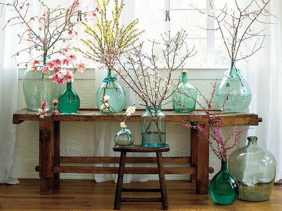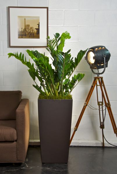 - Wildlife: Organic material will create a sense of life in the space. Greens are fantastic for bright spaces, and vases full of beautiful branches or willows will work when there isn’t enough light. ZZ plants, pictured below, are lush and dark green and require minimal upkeep. Give them a thorough soaking once ever 10 days.